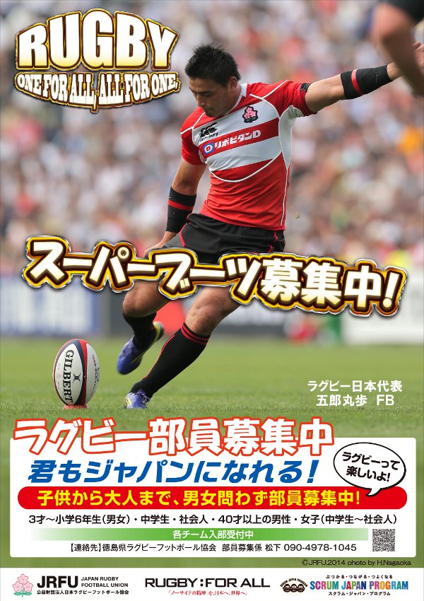 部員募集ポスター(五郎丸選手の写真使用)を掲示してくださる店舗や事業所を募集しています。