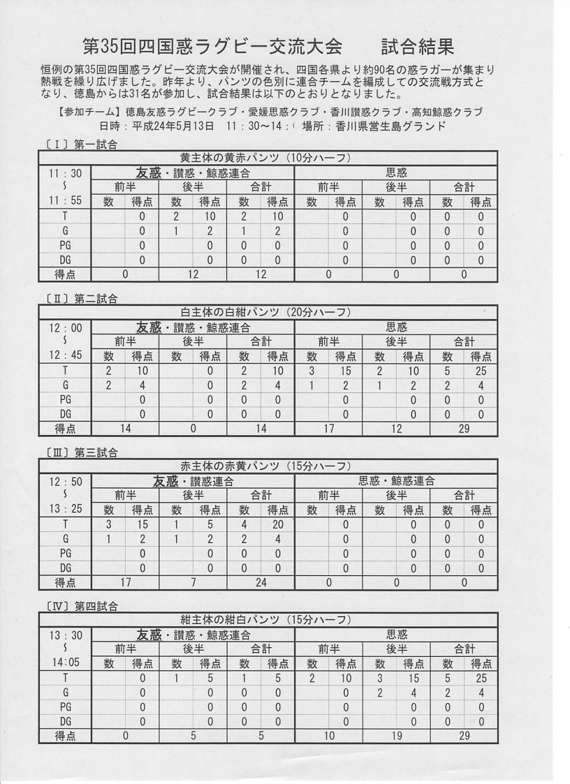 ■ 第35回四国惑ラグビー交流大会【試合結果】