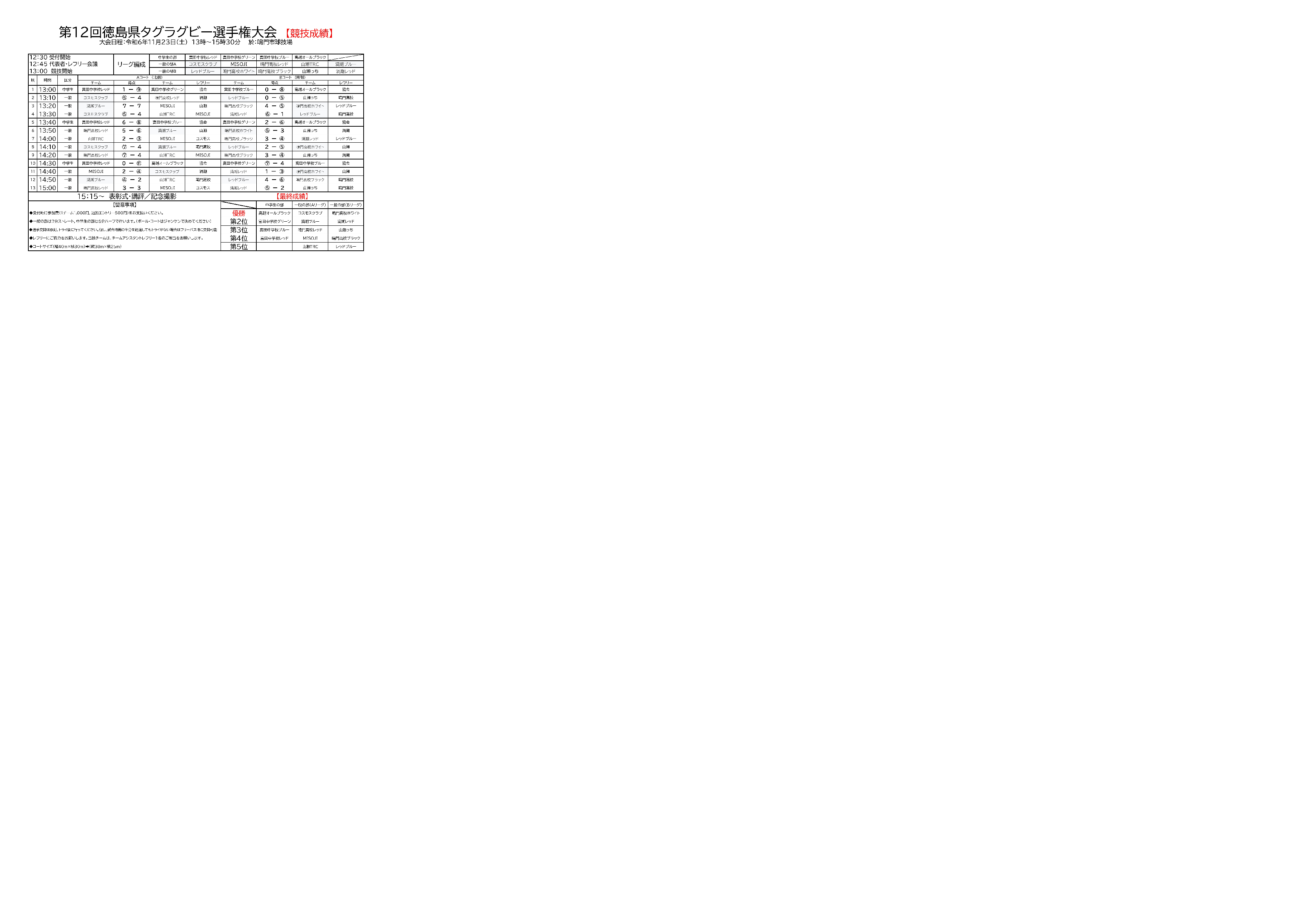 第12回徳島県タグラグビー選手権大会の結果です。