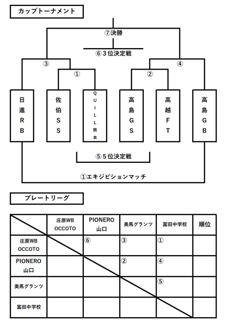 ▼Bリーグ結果 (1位)高島GBレガシー (2位)熊本QUILL CLUB (3位)高越ファイヤートルネード (4位)PIONERO山口 (5位)徳島市富田中学校